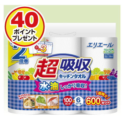 エリエール 超吸収キッチンタオル(100 カット×6 ロール)